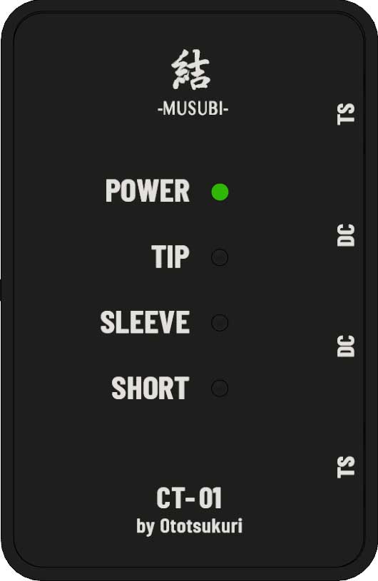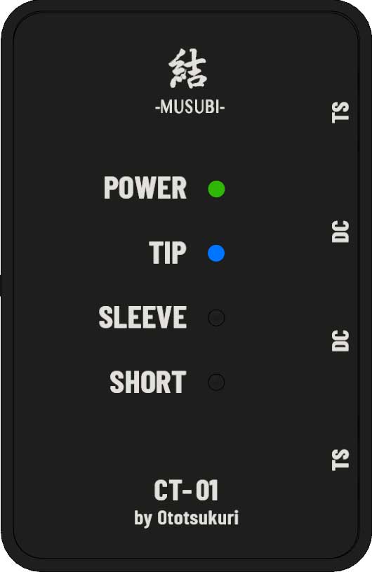 ※ケーブルテスターにプラグが完全に刺さっていない場合、通電していてもTIP/SLEEVEが消灯する場合があります。プラグは完全に差し込んでください。